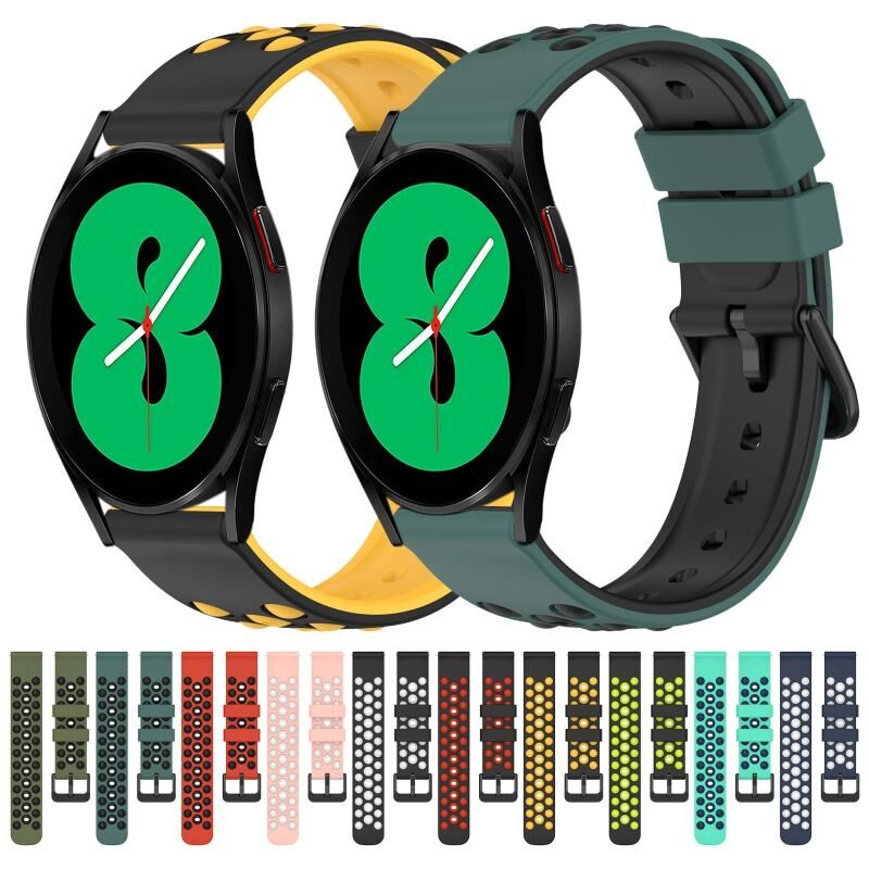 Για το Samsung Galaxy Watch4 44mm 20mm Δύο-χρώμα πορώδες λουράκι σιλικόνης ρολόι (Midnight Blue + Λευκό)