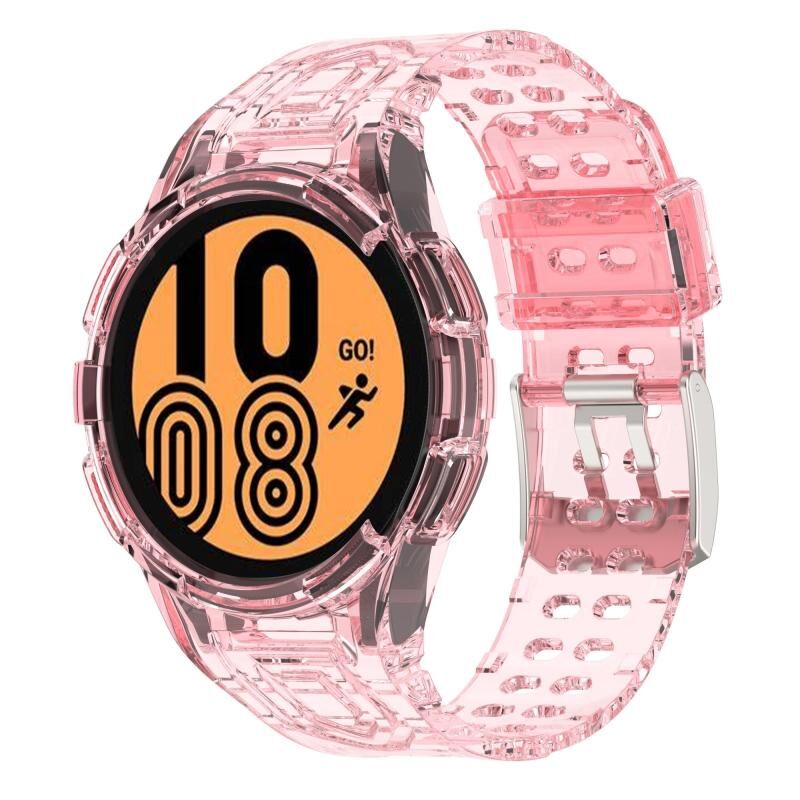 Για το Samsung Galaxy Watch4 44mm Armor Integrated TPU Double-Pin Buckle Smart Watch Band (Διαφανές ροζ)
