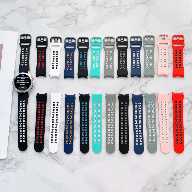 For Samsung Galaxy Watch4 44mm Double Buckles Two-color Silicone Watch Band(Blue White)