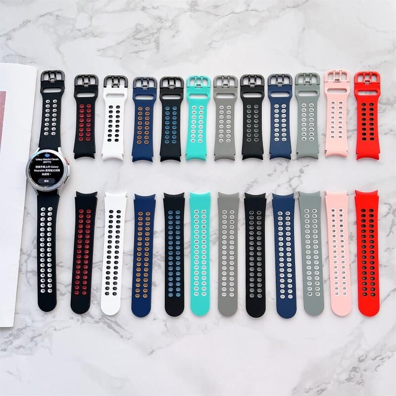 For Samsung Galaxy Watch4 44mm Double Buckles Two-color Silicone Watch Band(Rock Blue White)