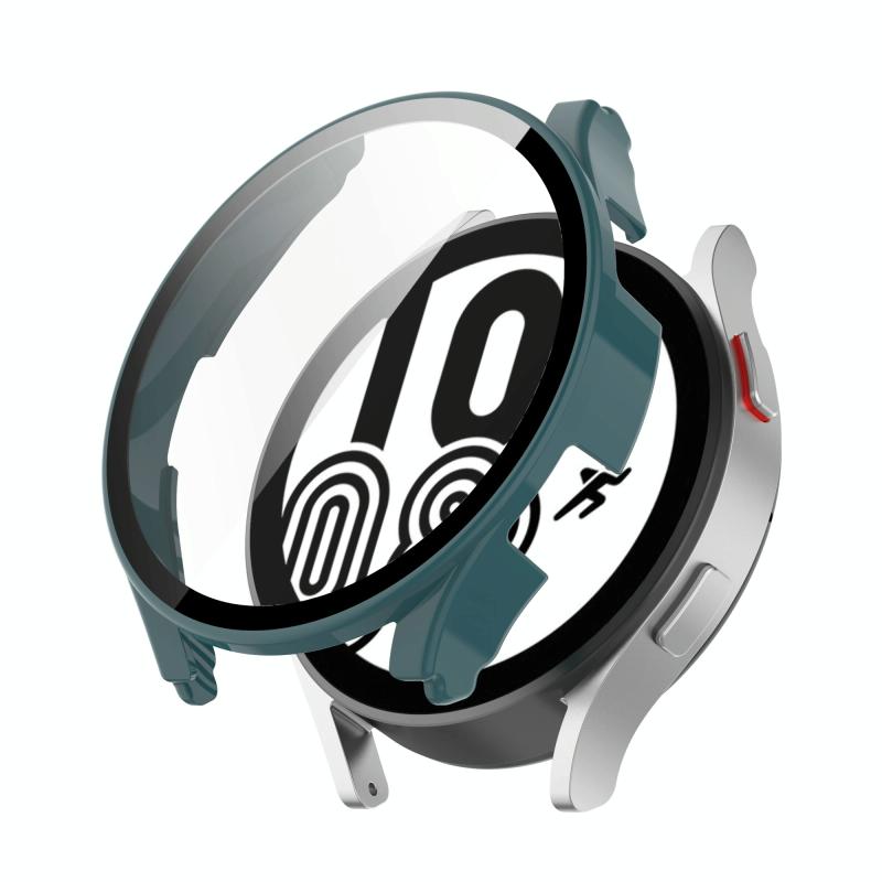 For Samsung Galaxy Watch4 44mm PC + Tempered Glass Watch Case(Pine Needle Green)
