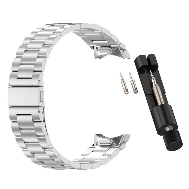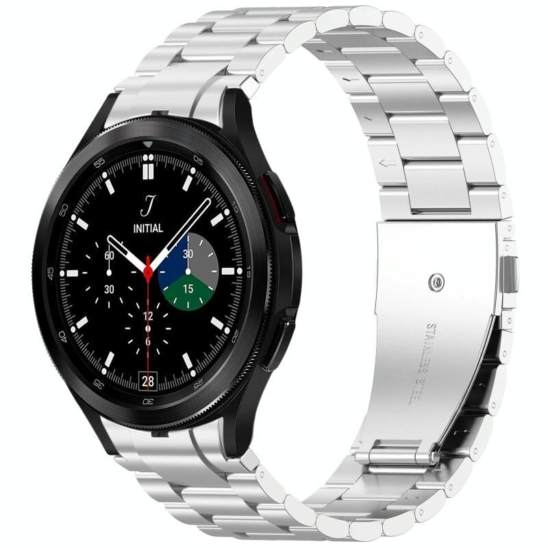 Για το Samsung Galaxy Watch4 Classic 42 / 46mm Τρεις χάντρες κουμπί γρήγορης απελευθέρωσης μεταλλική ζώνη ρολογιού (ασημί)