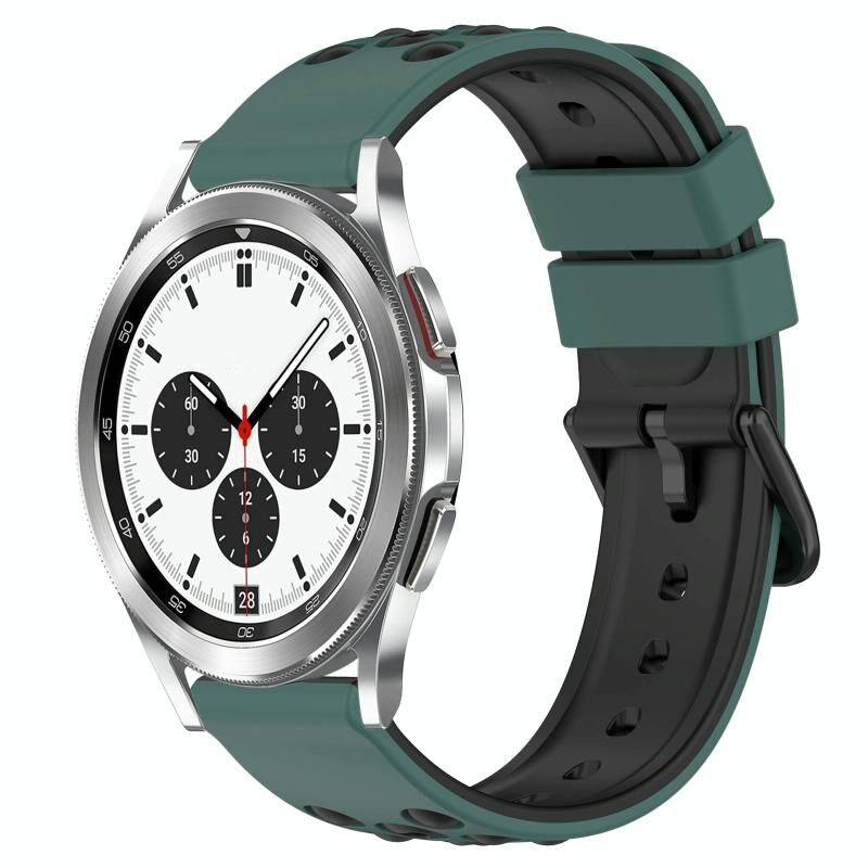 Για Samsung Galaxy Watch4 Classic 42mm 20mm Δίχρωμο Πορώδες Σιλικόνης Ρεμένι Ρολογιού (Ελιά Πράσινο+Μαύρο)