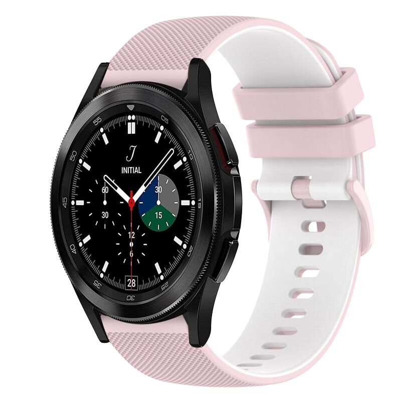 For Samsung Galaxy Watch4 Classic 46mm 20mm Checkered Two-Color Silicone Watch Band(Pink+White)