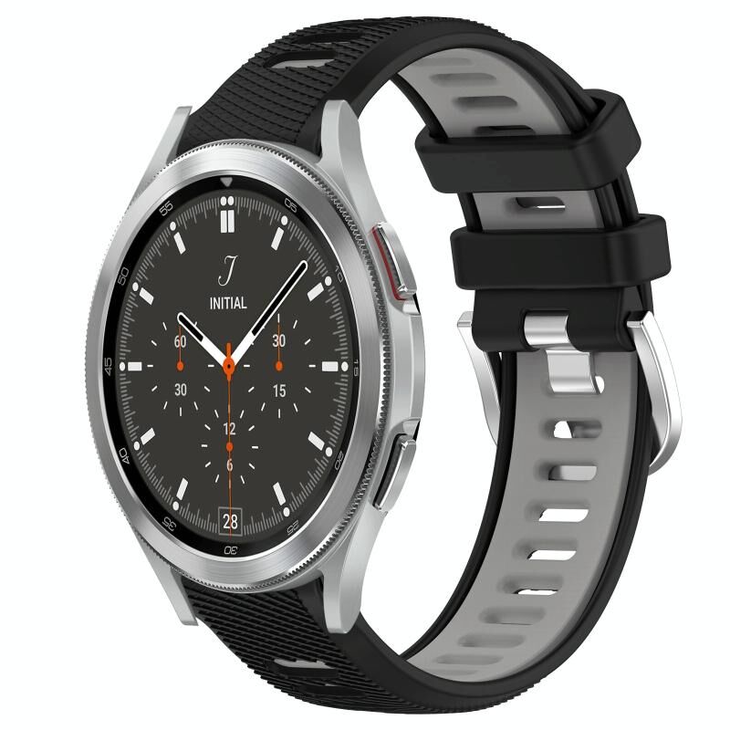 Για Samsung Galaxy Watch4 Classic 46mm 20mm Αθλητικό Δίχρωμο Μπρασελέ Ρολογιού Σιλικόνης με Ατσάλινη Κόπιτσα (Μαύρο+Γκρι)