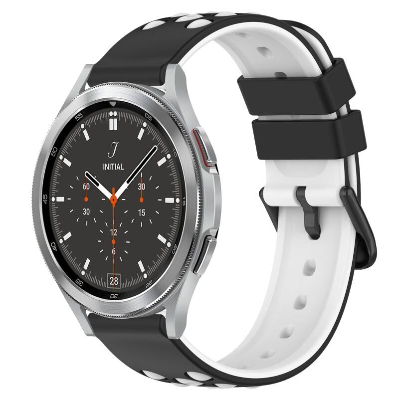 Για Samsung Galaxy Watch4 Classic 46mm 20mm Δίχρωμο Πορώδες Σιλικόνης Ρεμένι Ρολογιού (Μαύρο+Άσπρο)