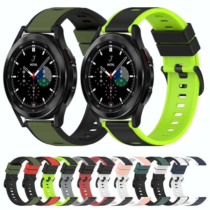 Για Samsung Galaxy Watch4 Classic 46mm 20mm Δίχρωμο Σιλικόνης Ρολόι Μπρασελέ (Χακί + Μαύρο)