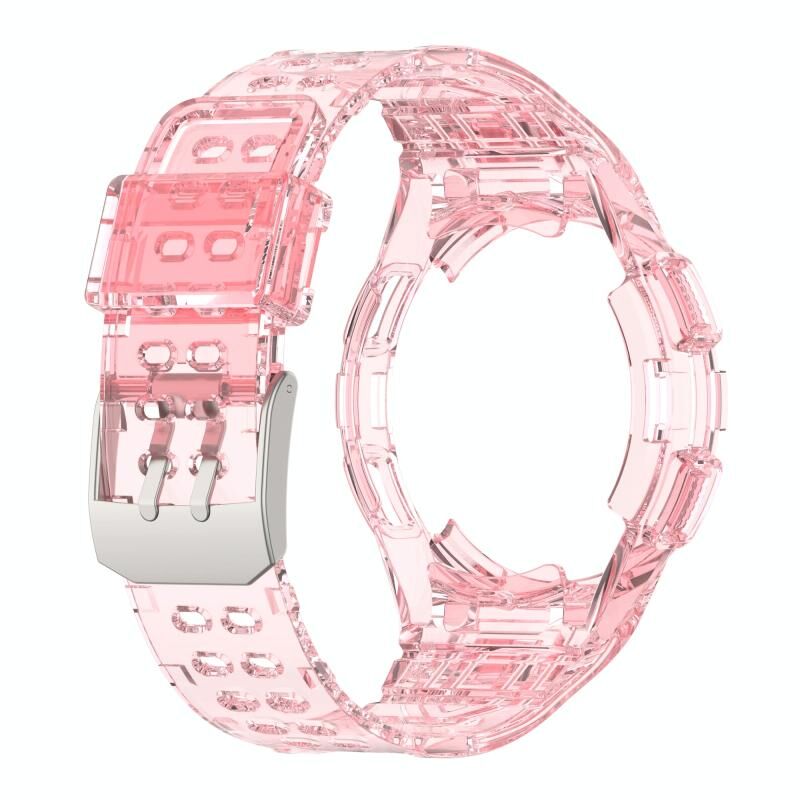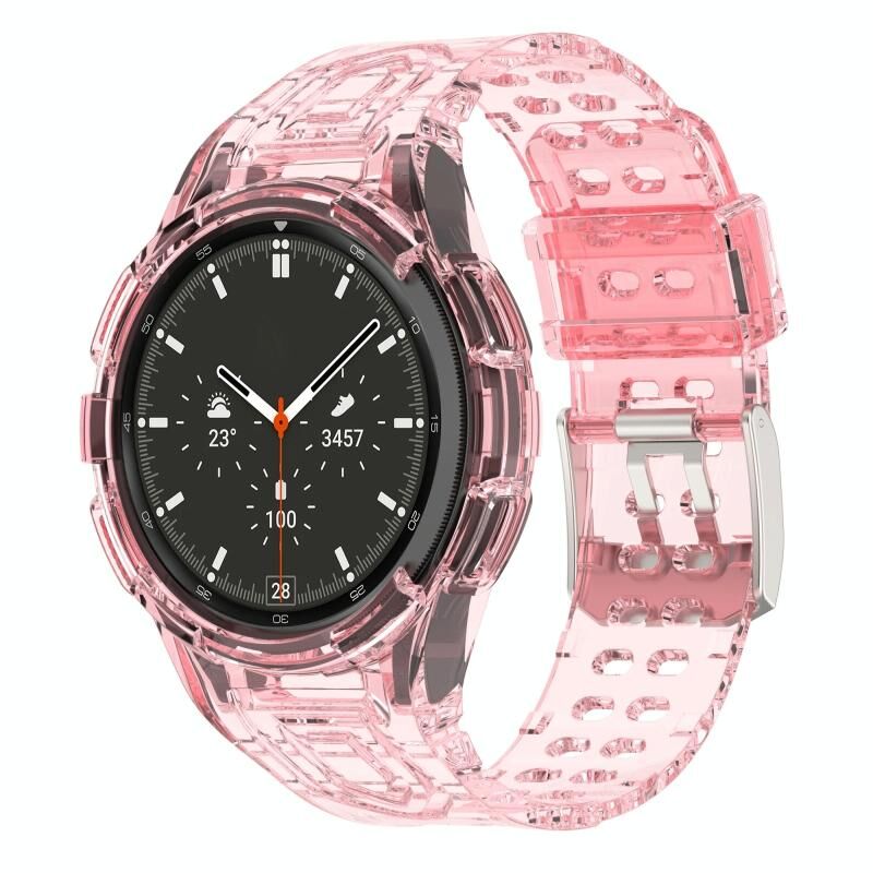 Για το Samsung Galaxy Watch4 Classic 46mm Armor Integrated TPU Double-Pin Buckle Smart Watch Band (Διαφανές ροζ)