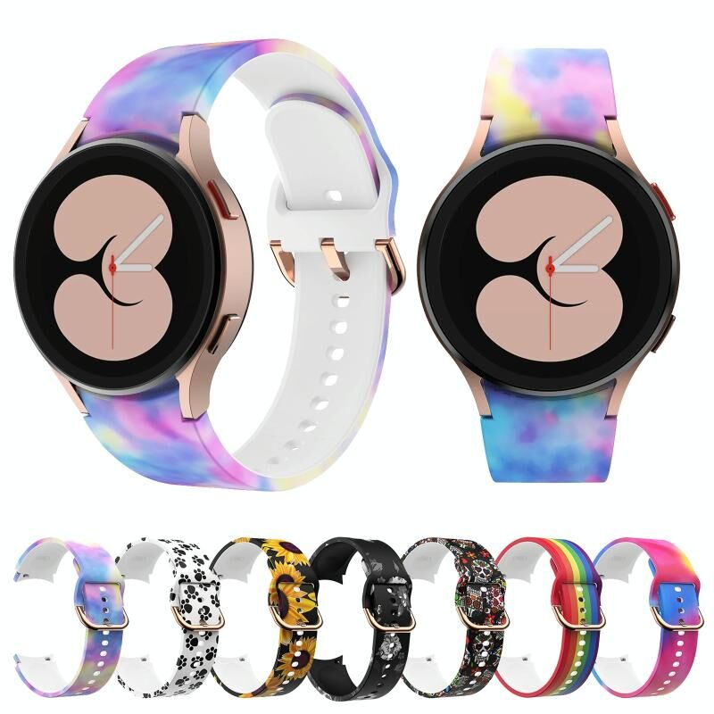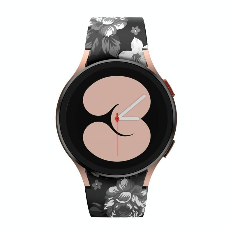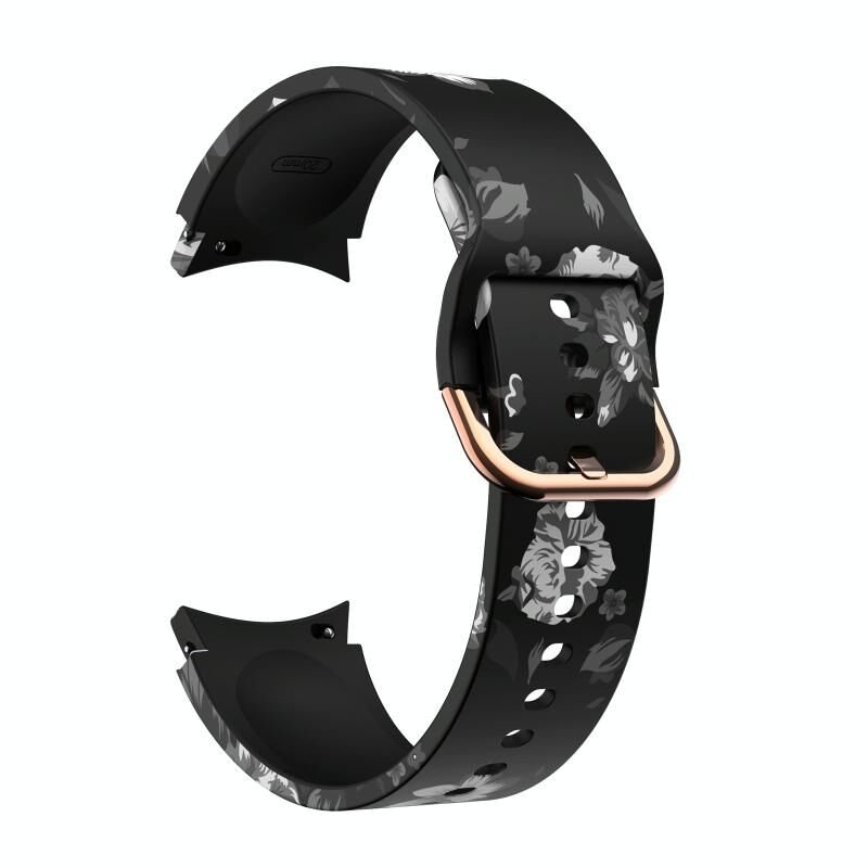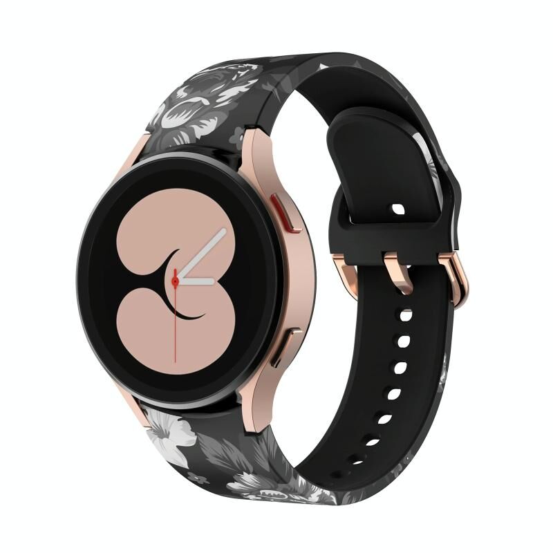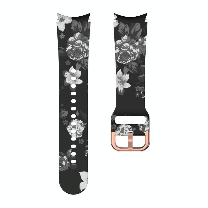 For Samsung Galaxy Watch4 / Watch4 Classic Silicone Printing Watch Band(Grey Flowers)