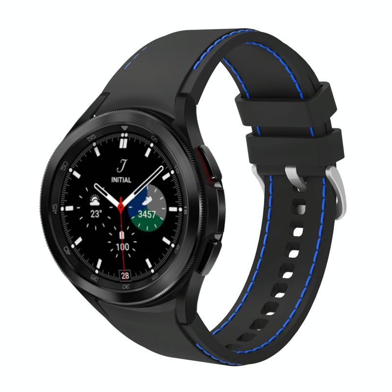 For Samsung Galaxy Watch4 / Watch4 Classic Silicone Stitching Watch Band(Black Blue)