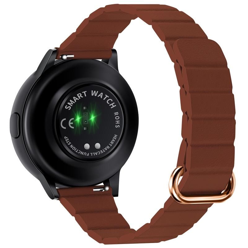 Για Samsung Galaxy Watch5 20mm Δερμάτινο Λουράκι Ρολογιού με Μαγνητικό Κούμπωμα (Χρυσό Ρόδι+Σκούρο Καφέ)