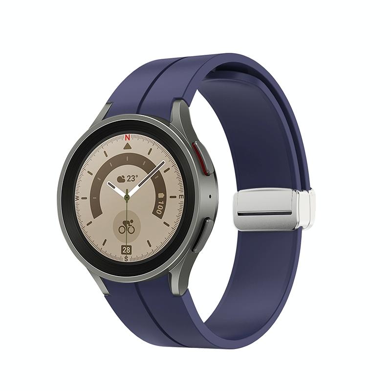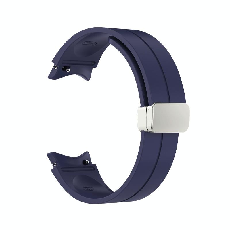 For Samsung Galaxy Watch5 40&44mm / Pro 45mm Folding Silver Buckle Silicone Watch Band(Dark Blue)