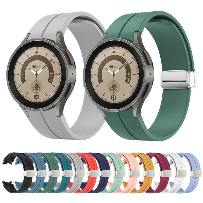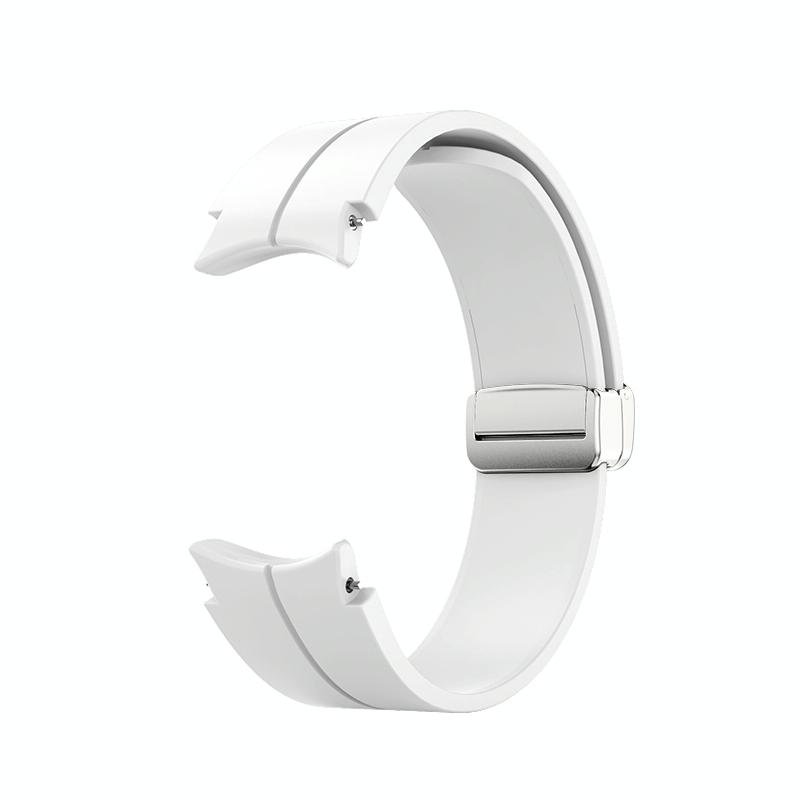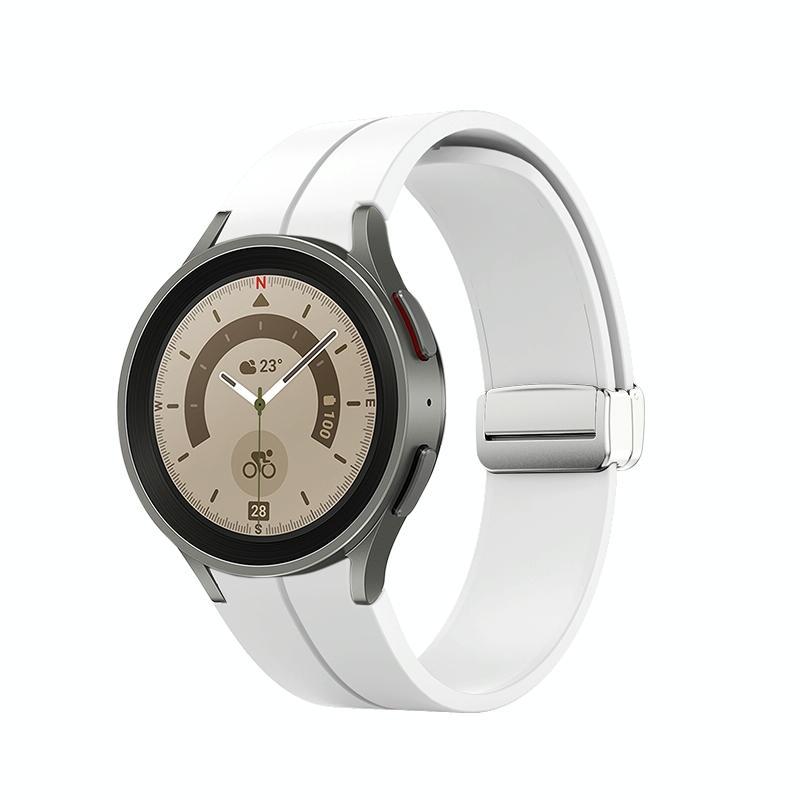 For Samsung Galaxy Watch5 40&44mm / Pro 45mm Folding Silver Buckle Silicone Watch Band(White)