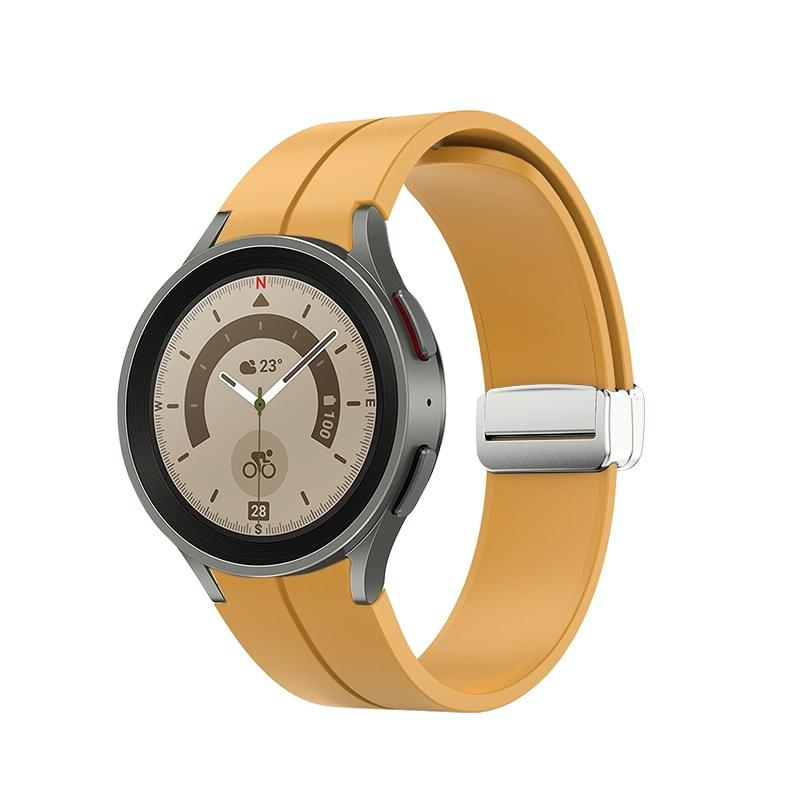 For Samsung Galaxy Watch5 40&44mm / Pro 45mm Folding Silver Buckle Silicone Watch Band(Yellow)