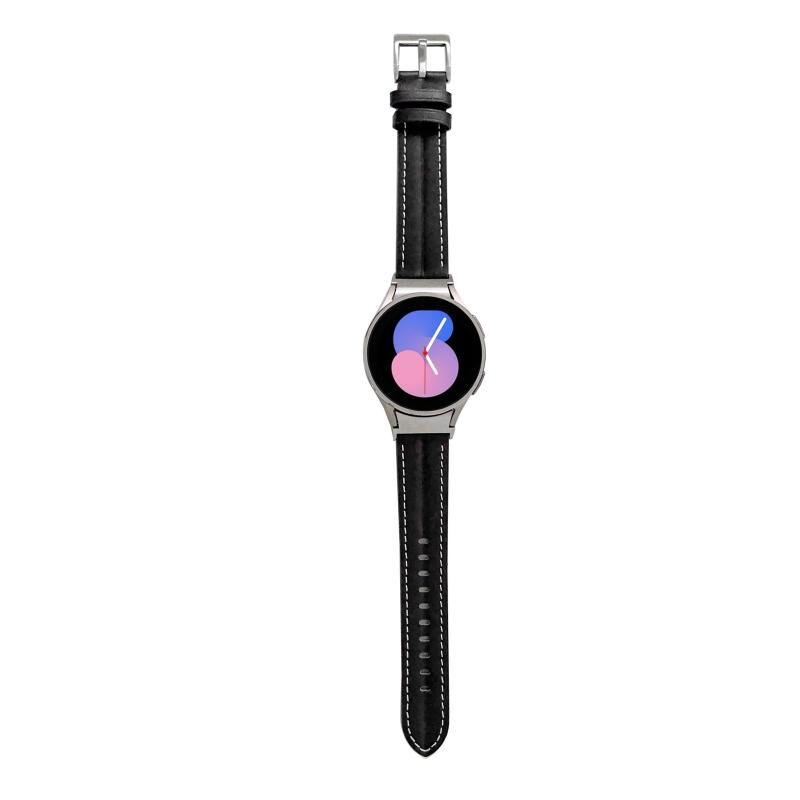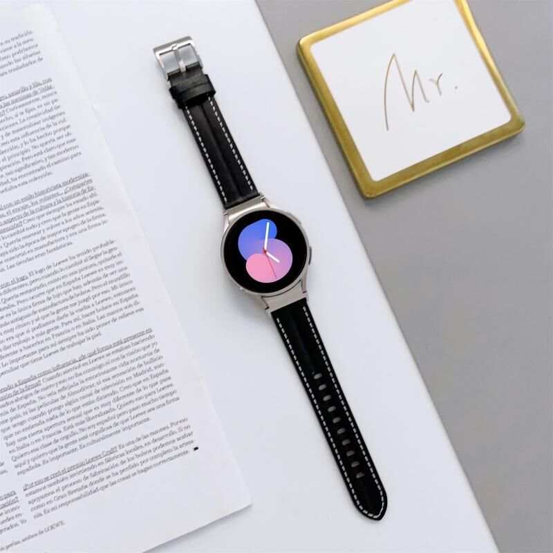 For Samsung Galaxy Watch5 40mm / 44mm Grooved Genuine Leather Watch Band(Black)