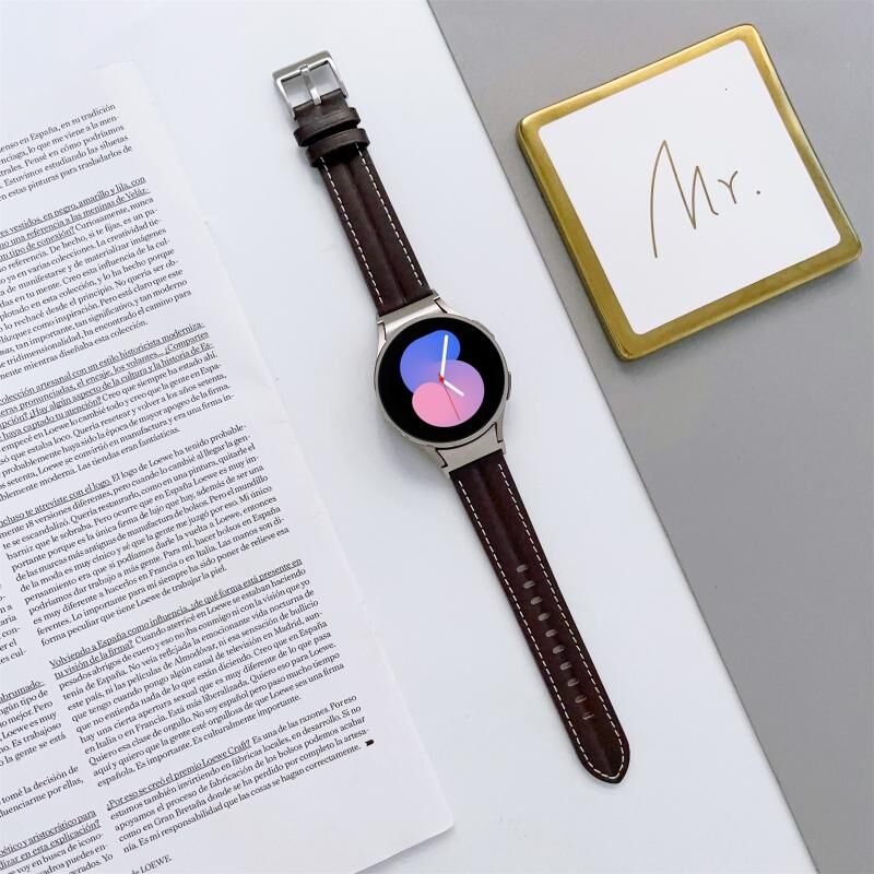 For Samsung Galaxy Watch5 40mm / 44mm Grooved Genuine Leather Watch Band(Coffee)