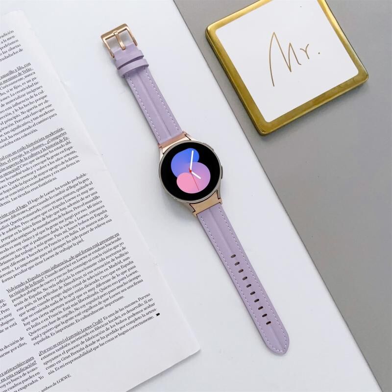 For Samsung Galaxy Watch5 40mm / 44mm Grooved Genuine Leather Watch Band(Purple)