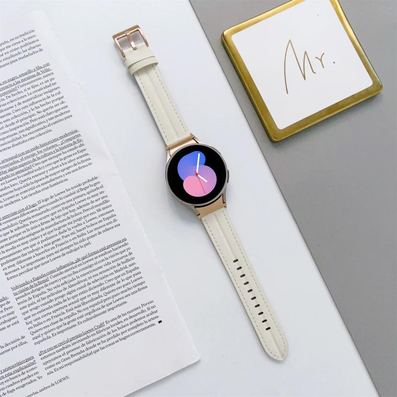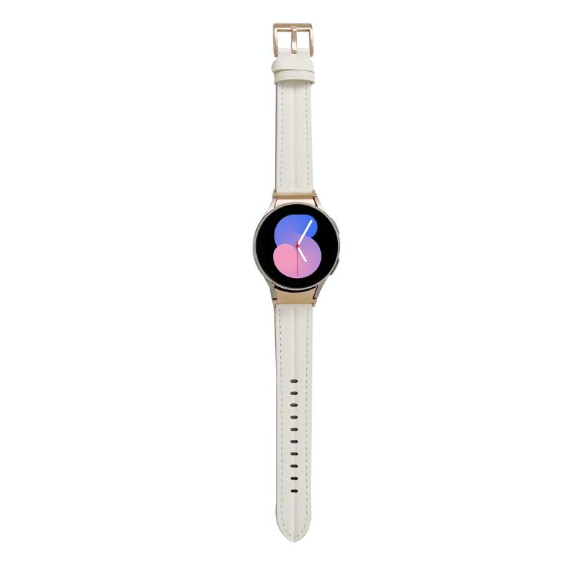 For Samsung Galaxy Watch5 40mm / 44mm Grooved Genuine Leather Watch Band(White)