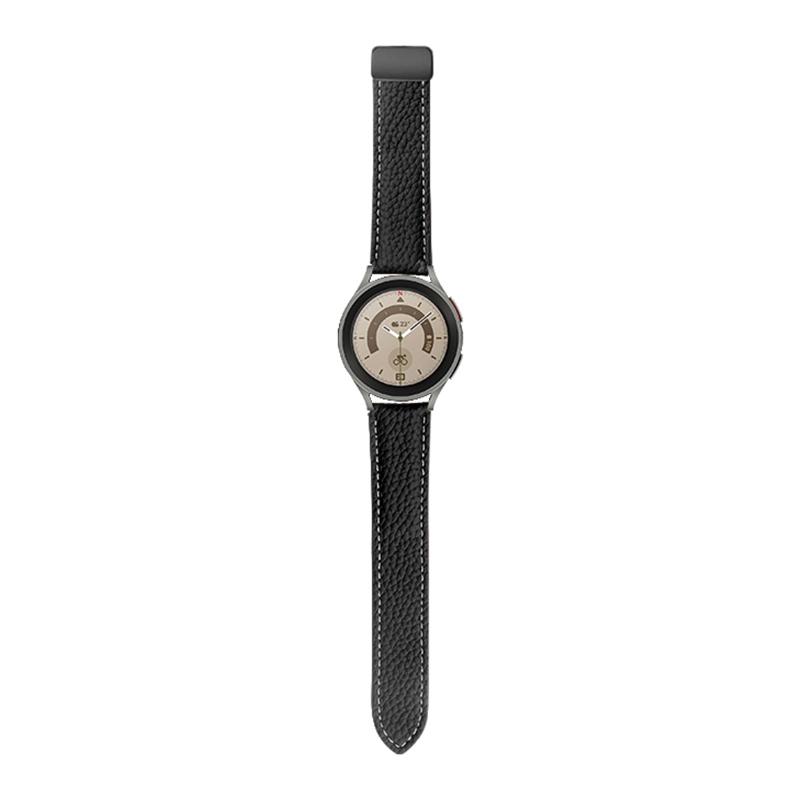 For Samsung Galaxy Watch5 40mm / 44mm Litchi Genuine Leather Watch Band Black Buckle(Black)