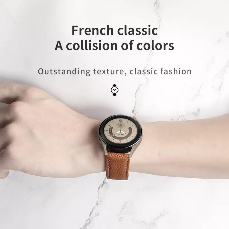 For Samsung Galaxy Watch5 40mm / 44mm Litchi Genuine Leather Watch Band Black Buckle(Brown)