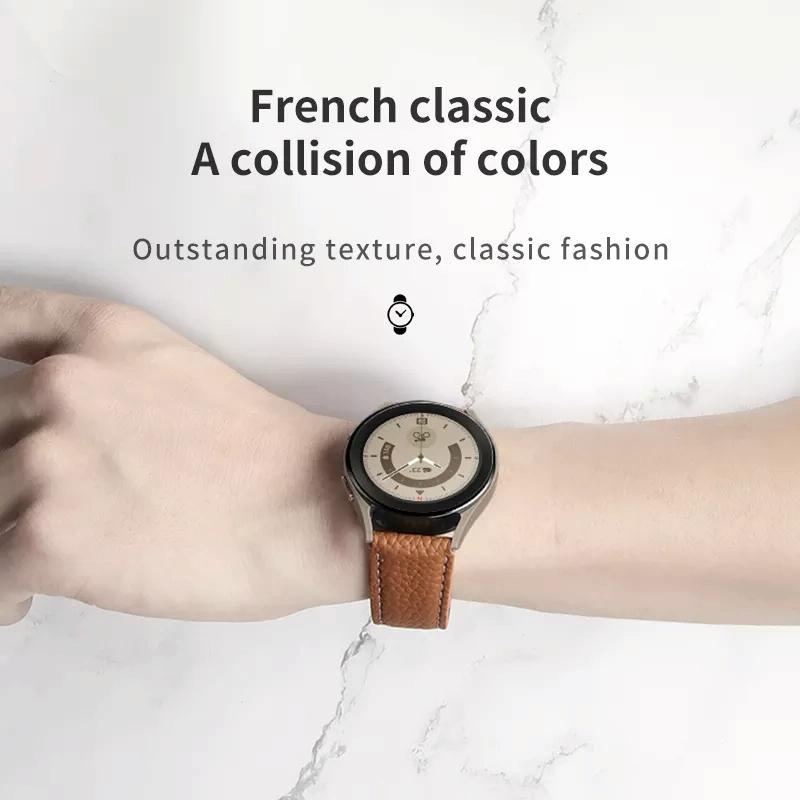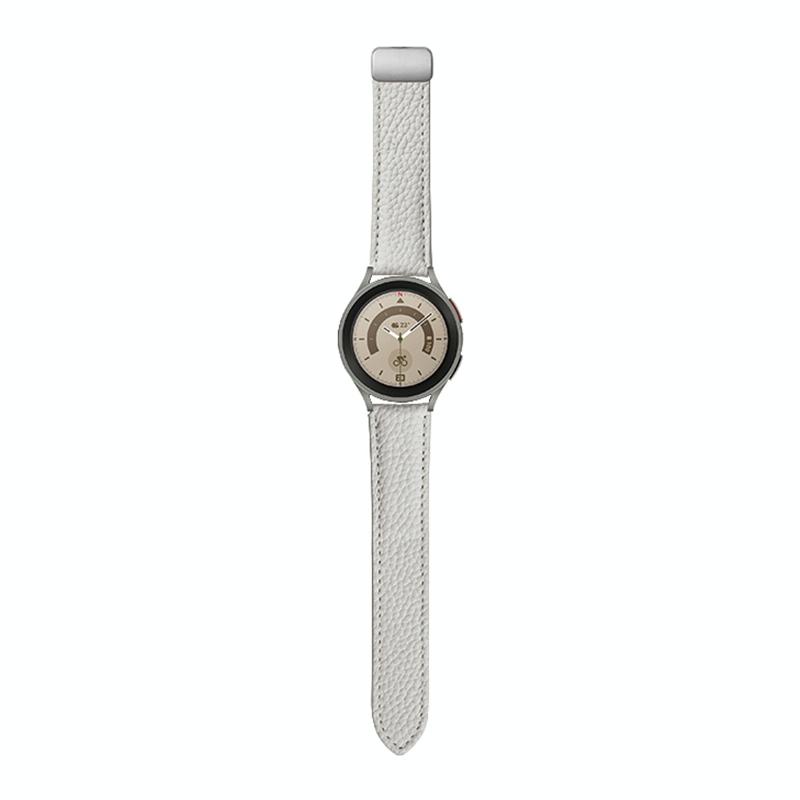 For Samsung Galaxy Watch5 40mm / 44mm Litchi Genuine Leather Watch Band Silver Buckle(White)