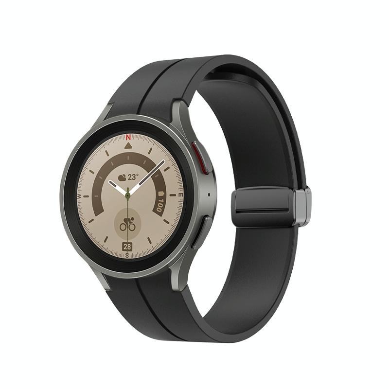 For Samsung Galaxy Watch5 40mm / 44mm / Pro 45mm Folding Buckle Silicone Watch Band(Black)