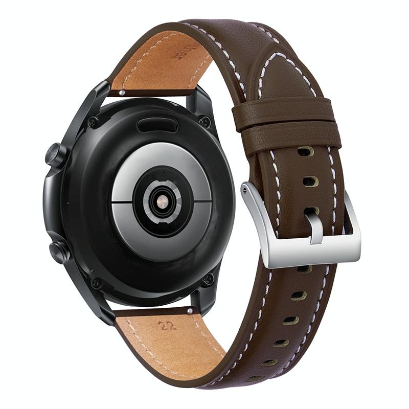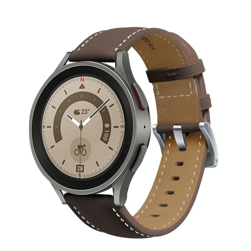 For Samsung Galaxy Watch5 40mm / 44mm Stitching Genuine Leather Watch Band(Coffee+Silver)