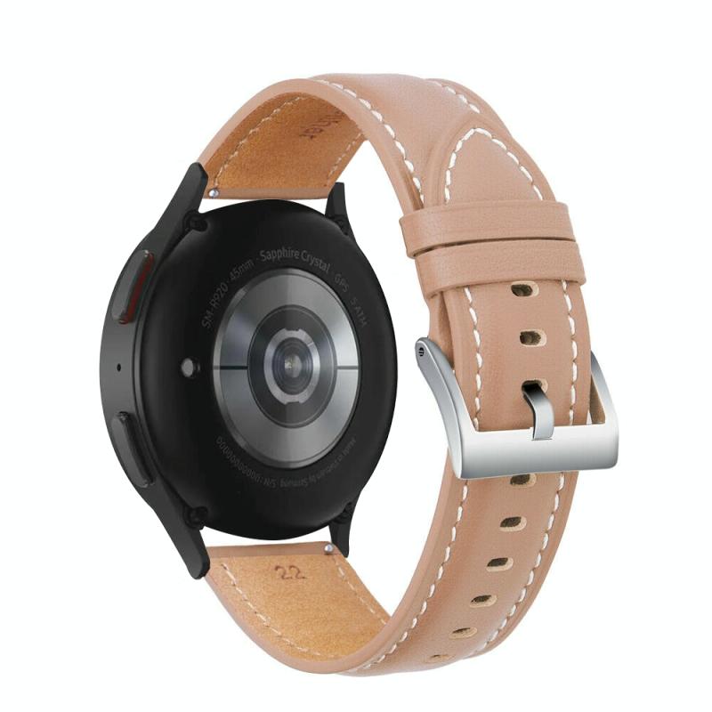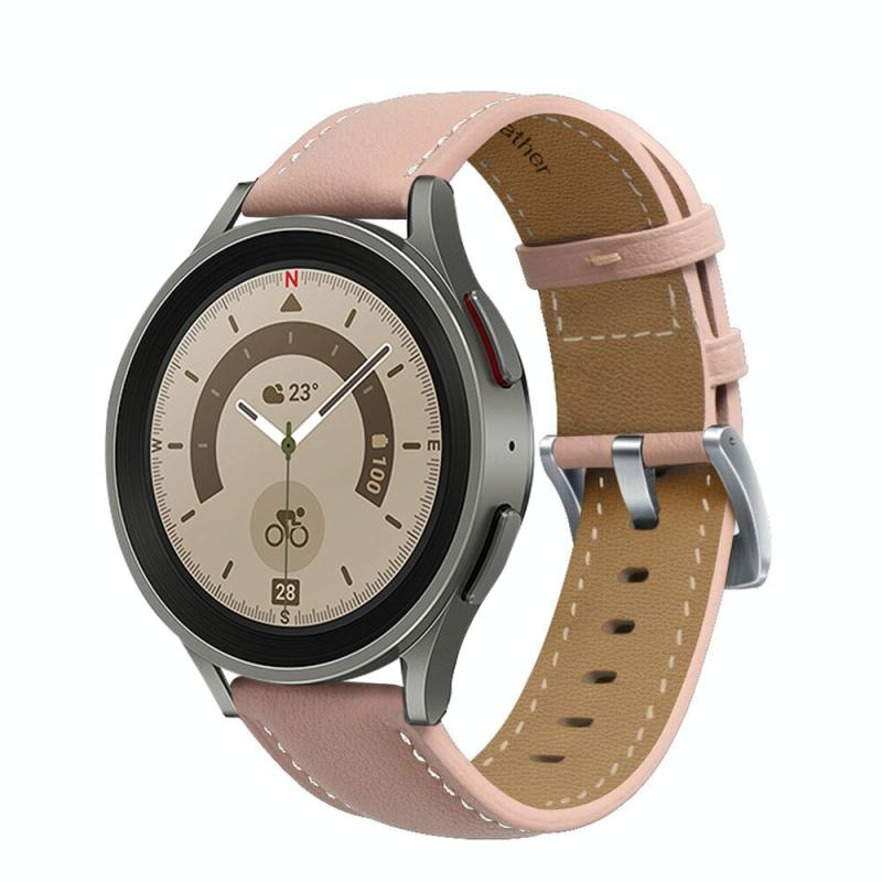 For Samsung Galaxy Watch5 40mm / 44mm Stitching Genuine Leather Watch Band(Light Pink+Silver)