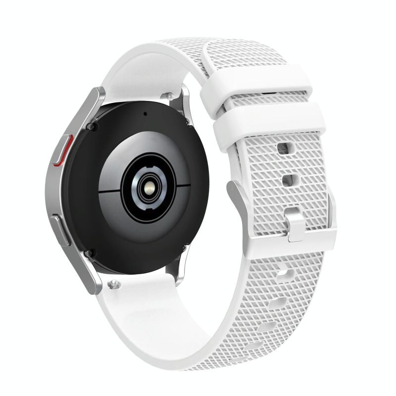 For Samsung Galaxy Watch5 40mm/44mm / Watch5 Pro 20mm Pockmarked Silver Buckle Silicone Watch Band(White)