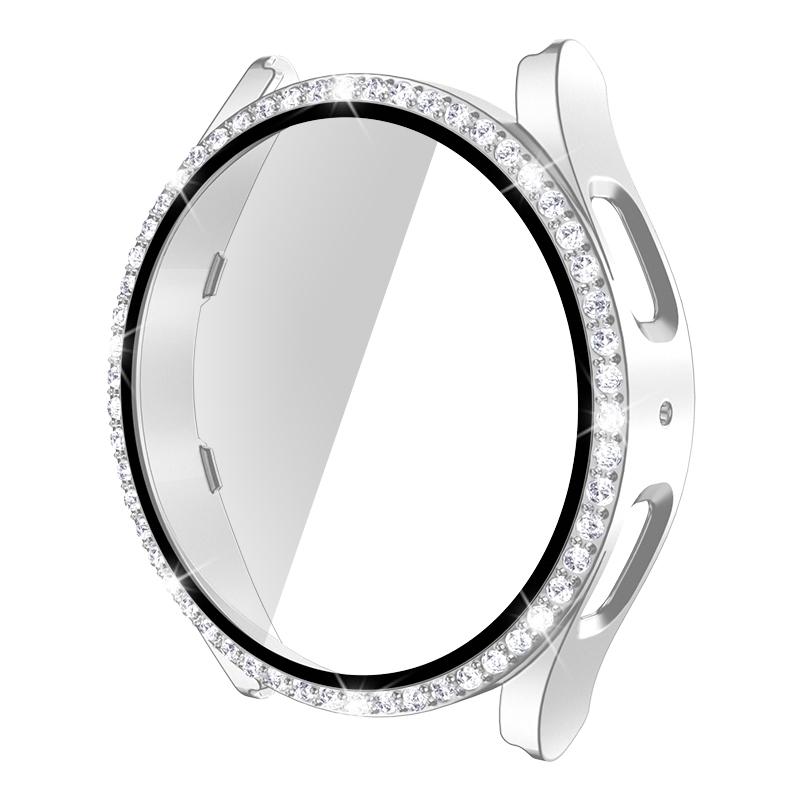 Για Samsung Galaxy Watch5 40mm Μονή σειρά Διαμαντένια θήκη ρολογιού PC+Επιχρυσωμένο γυαλί (Ασημί)