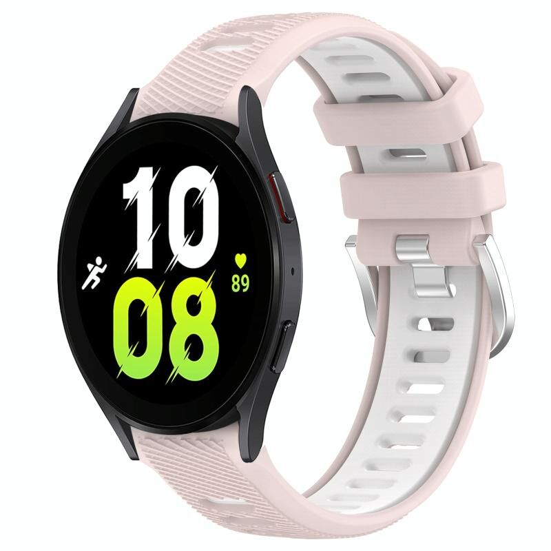 Για το Samsung Galaxy Watch5 44mm 20mm Αθλητισμός δύο χρωμάτων χάλυβα πόρπη σιλικόνης ρολόι μπάντα (ροζ + λευκό)
