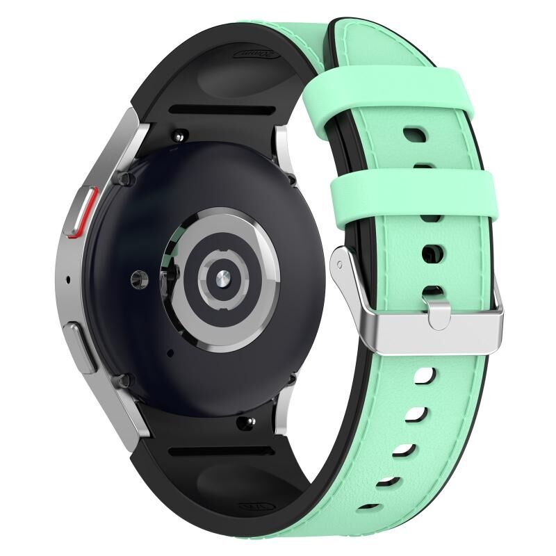 Για το Samsung Galaxy Watch5 44mm / 40mm σιλικόνης δερμάτινη ασημένια αγκράφα ρολόι μπάντα, μέγεθος: L (πράσινο)