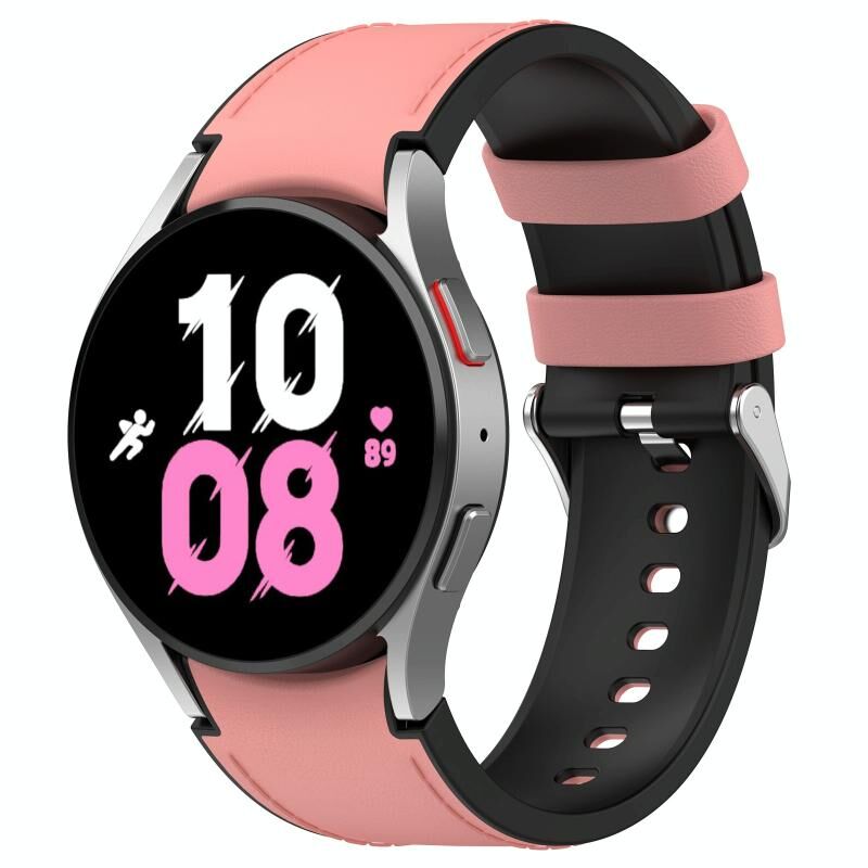 Για το Samsung Galaxy Watch5 44mm / 40mm σιλικόνης δερμάτινη ασημένια αγκράφα ρολόι μπάντα, μέγεθος: L (ροζ)