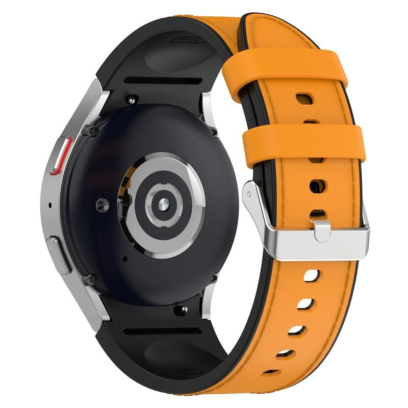 Για το Samsung Galaxy Watch5 44mm / 40mm σιλικόνης δερμάτινη ασημένια αγκράφα ρολόι μπάντα, μέγεθος: L (κίτρινο)