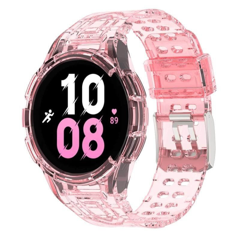 Για το Samsung Galaxy Watch5 44mm Armor Integrated TPU Double-Pin Buckle Smart Watch Band (Διαφανές ροζ)
