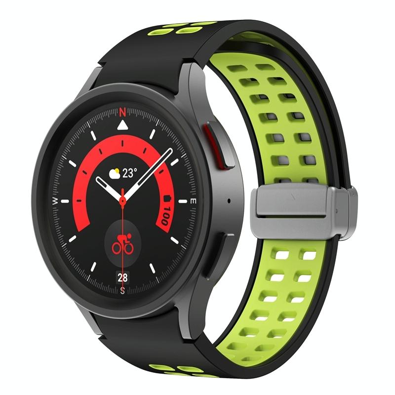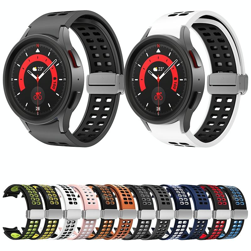 Για Samsung Galaxy Watch5 Διπλή σειρά τρυπών, Πτυσσόμενη αγκράφα, Λουράκι σιλικόνης ρολογιού (Μαύρο)