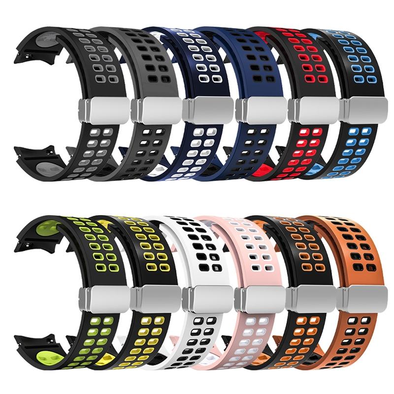 Για Samsung Galaxy Watch5 Διπλή σειρά τρυπών, Πτυσσόμενη αγκράφα, Λουράκι σιλικόνης ρολογιού (Μαύρο)