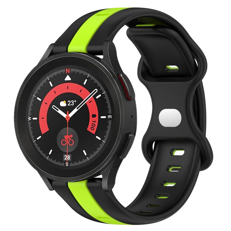 For Samsung Galaxy Watch5 Pro 45mm 20mm Butterfly Buckle Two-Color Silicone Watch Band(Black+Green)