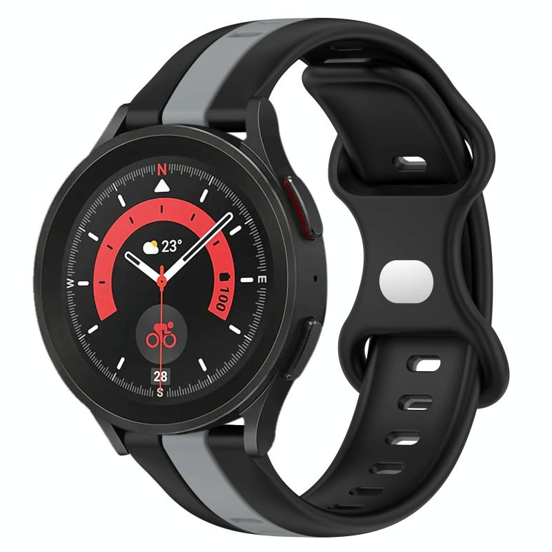 For Samsung Galaxy Watch5 Pro 45mm 20mm Butterfly Buckle Two-Color Silicone Watch Band(Black+Grey)