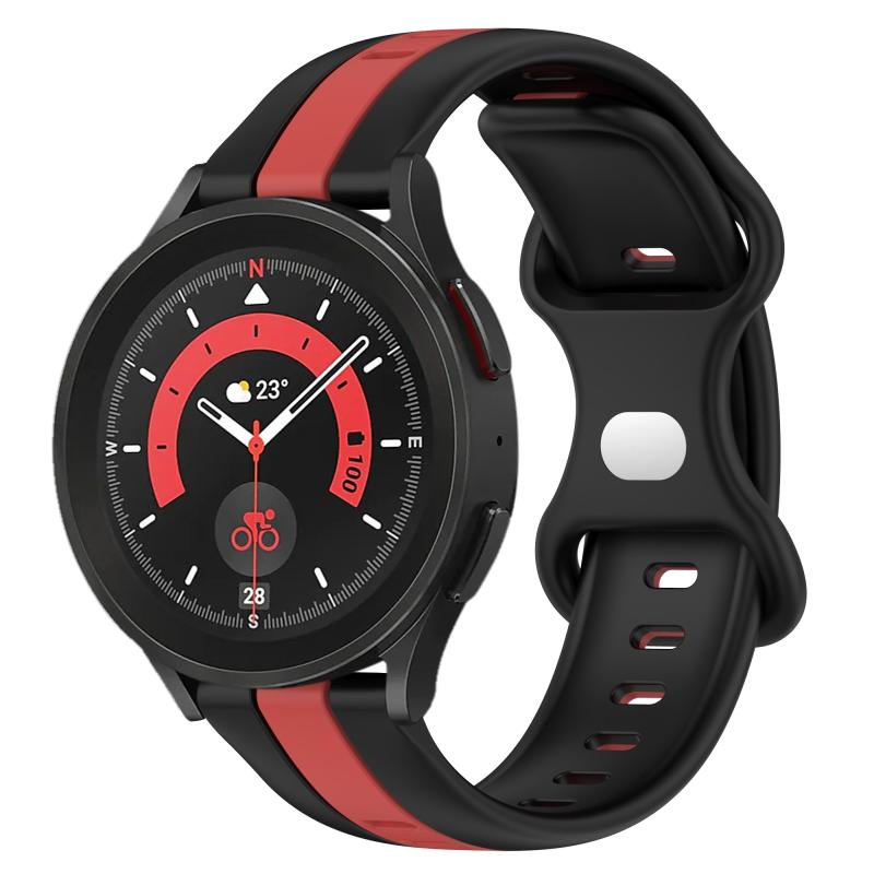 For Samsung Galaxy Watch5 Pro 45mm 20mm Butterfly Buckle Two-Color Silicone Watch Band(Black+Red)