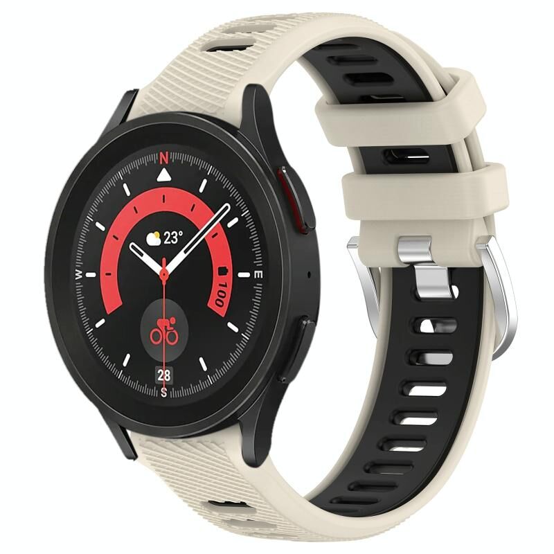 Για το Samsung Galaxy Watch5 Pro 45mm 20mm Αθλητισμός δύο χρωμάτων χάλυβα πόρπη σιλικόνης ρολόι μπάντα ρολογιών (Starlight + Μαύρο)