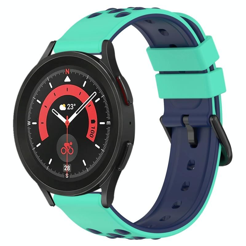 Για το Samsung Galaxy Watch5 Pro 45mm 20mm Δύο-χρώμα πορώδες λουράκι σιλικόνης ρολόι (Lime Green + Blue)