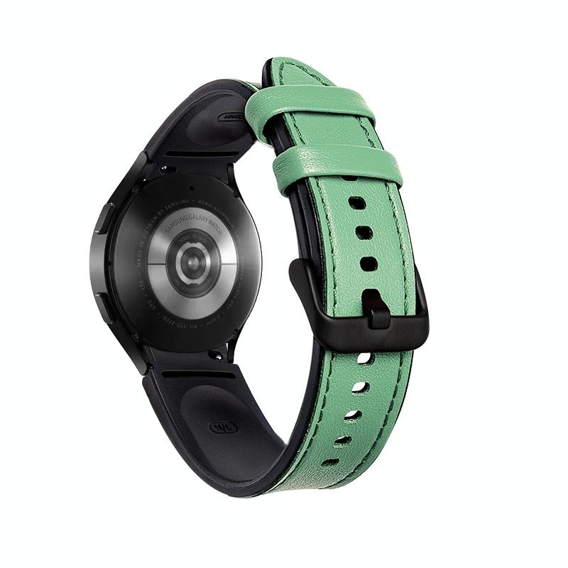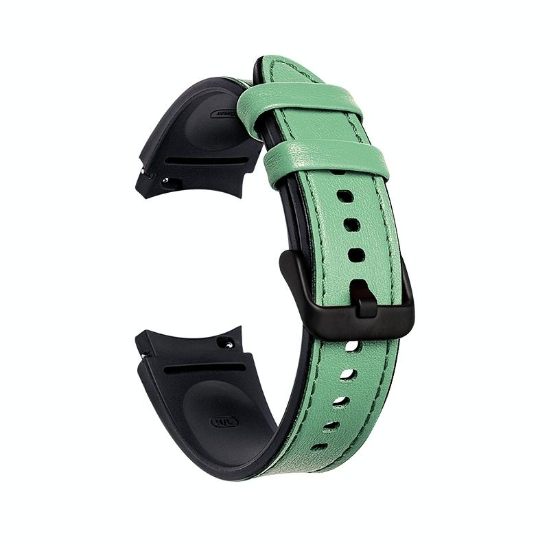 For Samsung Galaxy Watch5 Pro 45mm/5 44mm/5 40mm Silicone + Leather Black Buckle Watch Band(Cyan Green)