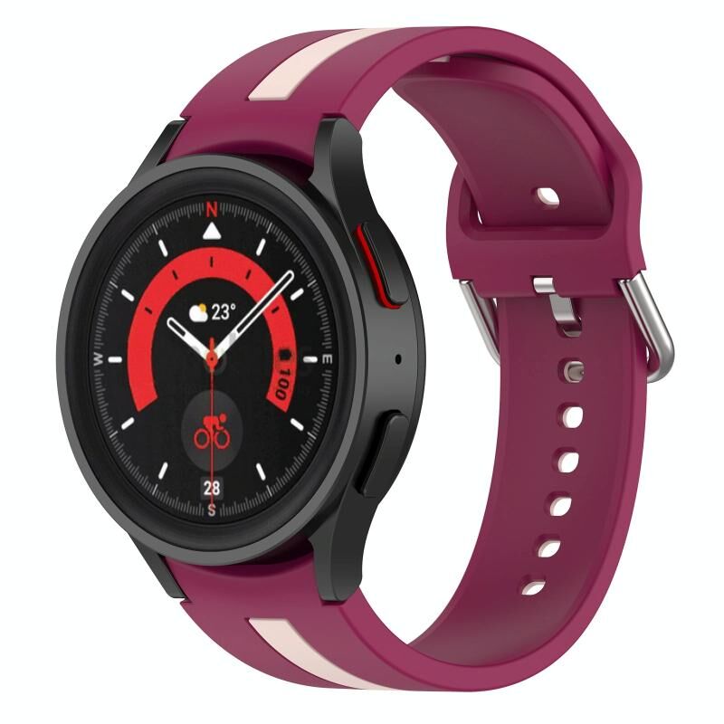 Για το Samsung Galaxy Watch5 / Watch5 Pro Δύο χρώματα λωρίδα σιλικόνης ρολόι μπάντα ρολογιών (κρασί κόκκινο ροζ)