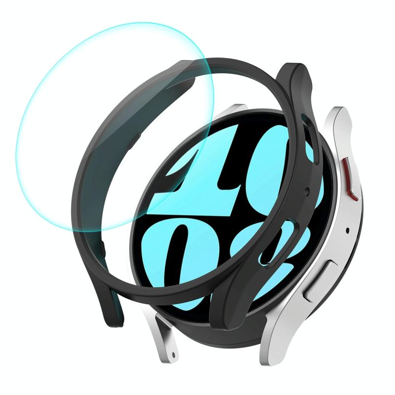 For Samsung Galaxy Watch6 44mm ENKAY Hat-Prince Electroplated Hard PC Case + 0.2mm 9H Glass Screen Protector(Black) (ENKAY)