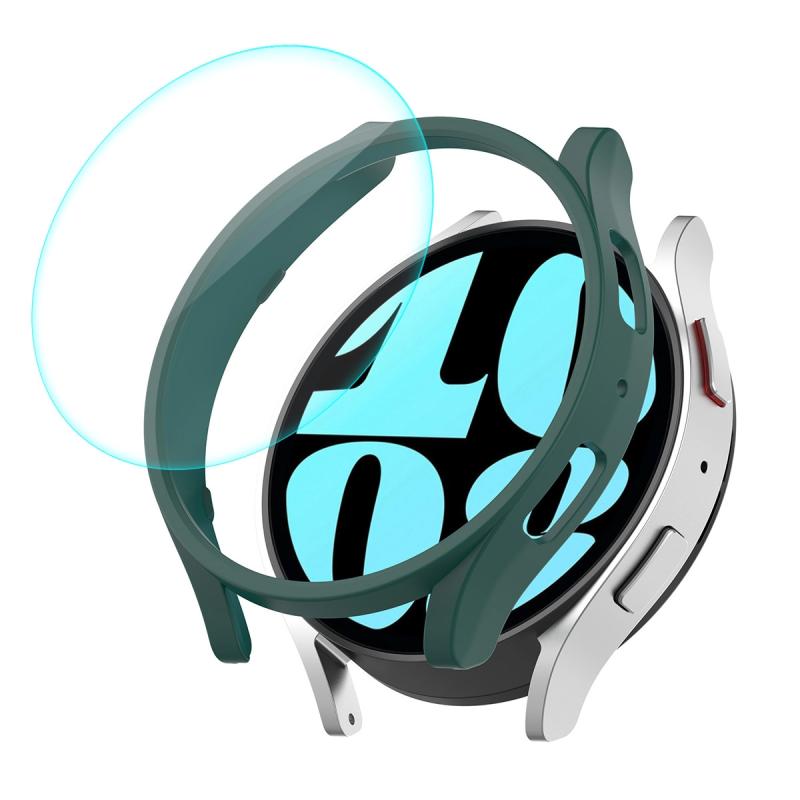 For Samsung Galaxy Watch6 44mm ENKAY Hat-Prince Electroplated Hard PC Case + 0.2mm 9H Glass Screen Protector(Dark Green) (ENKAY)