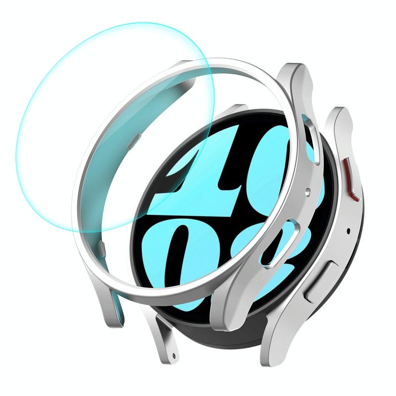 For Samsung Galaxy Watch6 44mm ENKAY Hat-Prince Electroplated Hard PC Case + 0.2mm 9H Glass Screen Protector(Silver) (ENKAY)