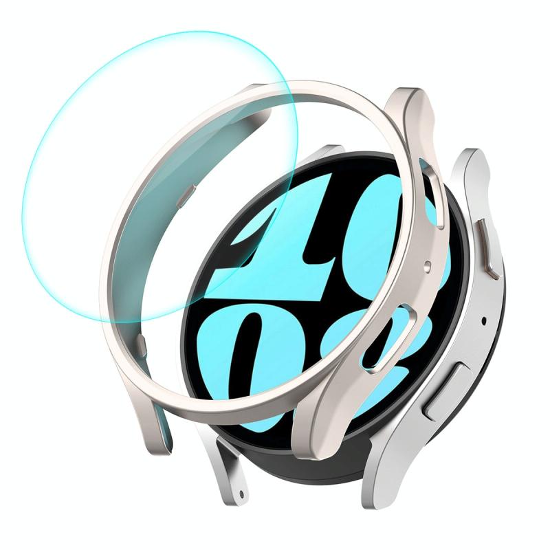 For Samsung Galaxy Watch6 44mm ENKAY Hat-Prince Electroplated Hard PC Case + 0.2mm 9H Glass Screen Protector(Starlight Color) (ENKAY)