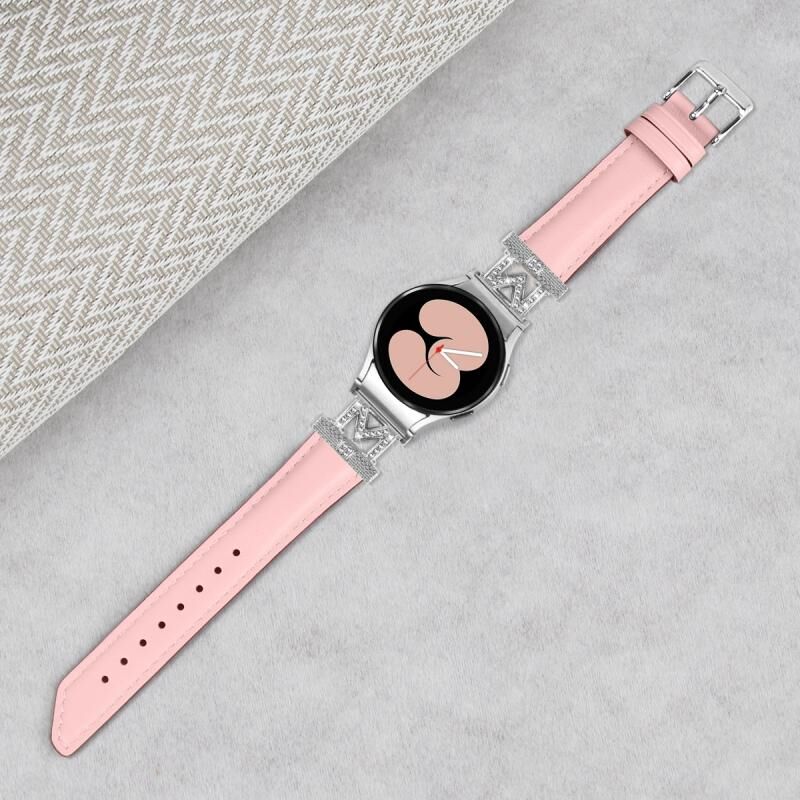 Για το Samsung Galaxy Watch6 / 6 Classic M Letter D-shaped Twill Leather Watch Band (Ασημί Ροζ)
