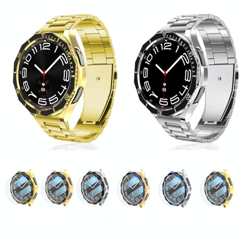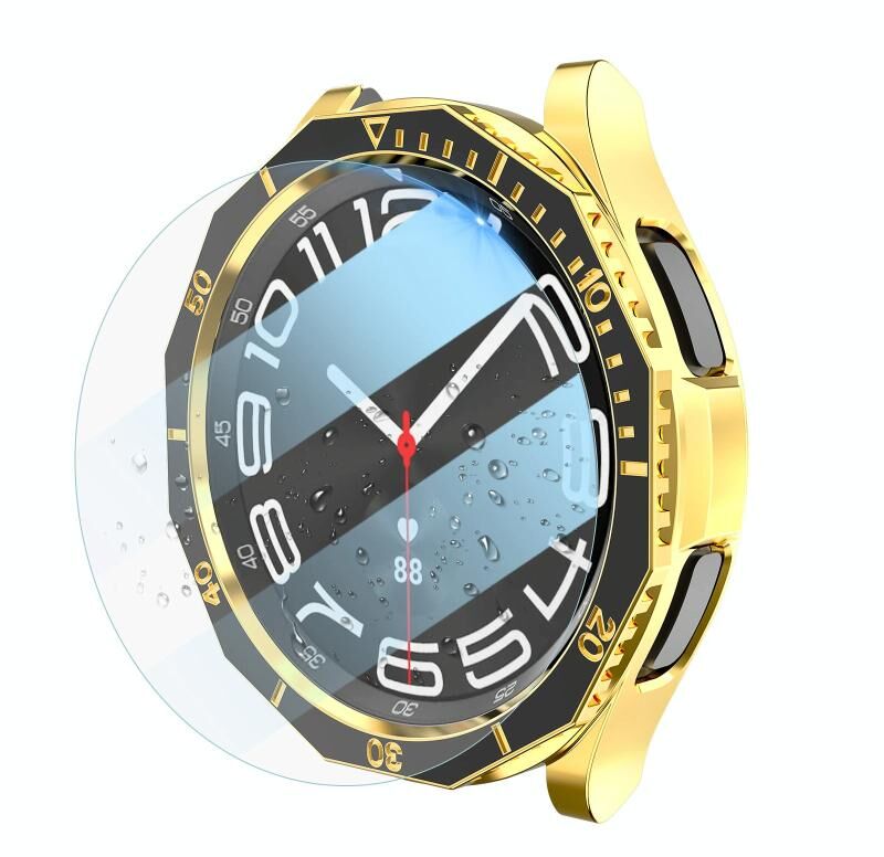Για το Samsung Galaxy Watch6 Classic 43mm R950 Θήκη PC με ηλεκτροστατική επίστρωση + μετριασμένη μεμβράνη + σετ δαχτυλιδιών στεφάνης ρολογιού (μαύρο+χρυσό)